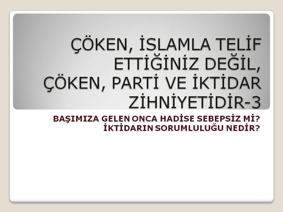 Eski CB Abdullah Gül’ün “Bütün dünyada siyasal İslam iflas etmiştir” ifadesiyle ilgili olarak “Çöken, İslamla Telif Ettiğiniz Değil, Çöken, İktidar Zihniyetidir.” başlığı altındaki yazı dizimizin üçüncü bölümünü paylaşıyorum.