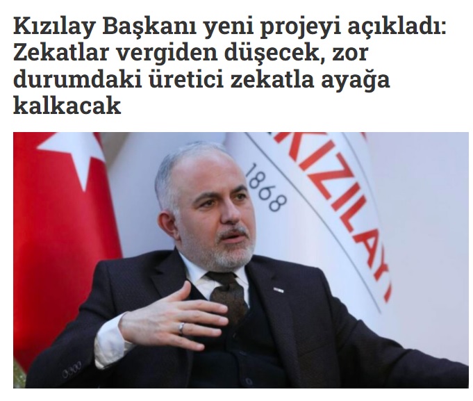 Bugün bir haber okudum; Kızılay Genel Başkanı Kerem Kınık, “Kızılay Zekat Müessesi” kurduklarını ve bu kapsamda toplayacakları zekatla üretim sıkıntısı çeken üreticilerin borçlarının ödeneceği bir model kuracaklarını söylemiş.