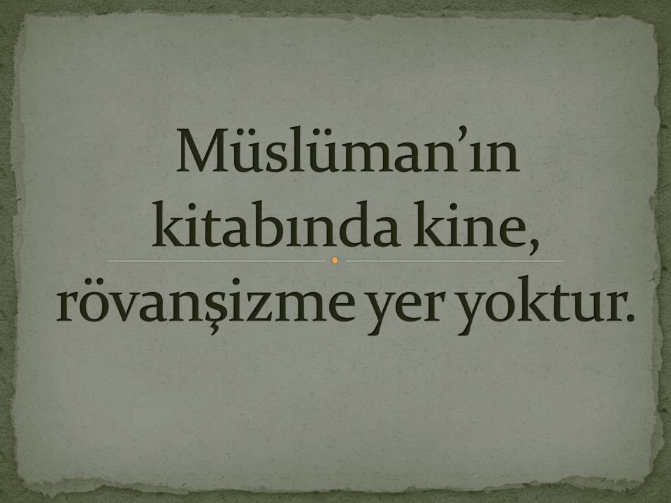 Müslüman’ın kitabında kine, rövanşizme yer yoktur.